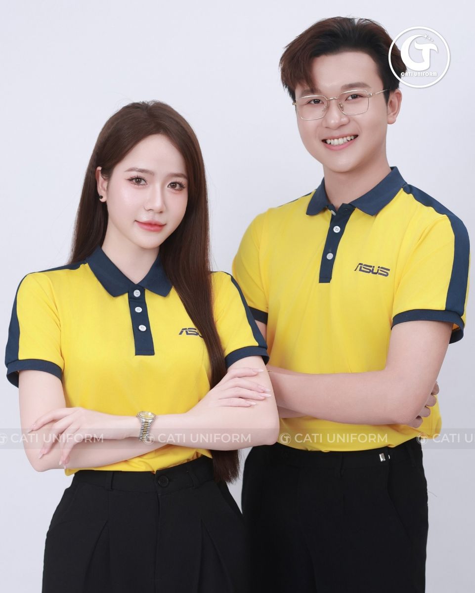 Áo thun đồng phục là lựa chọn phổ biến bởi tính tiện dụng, thoáng mát và sự thoải mái trong suốt quá trình làm việc. Đặc biệt, thời tiết mùa thu rất phù hợp để nhân viên mặc áo thun kết hợp với quần âu, chân váy hoặc áo khoác gió, tạo nên phong cách công sở trẻ trung nhưng vẫn chỉnh chu.