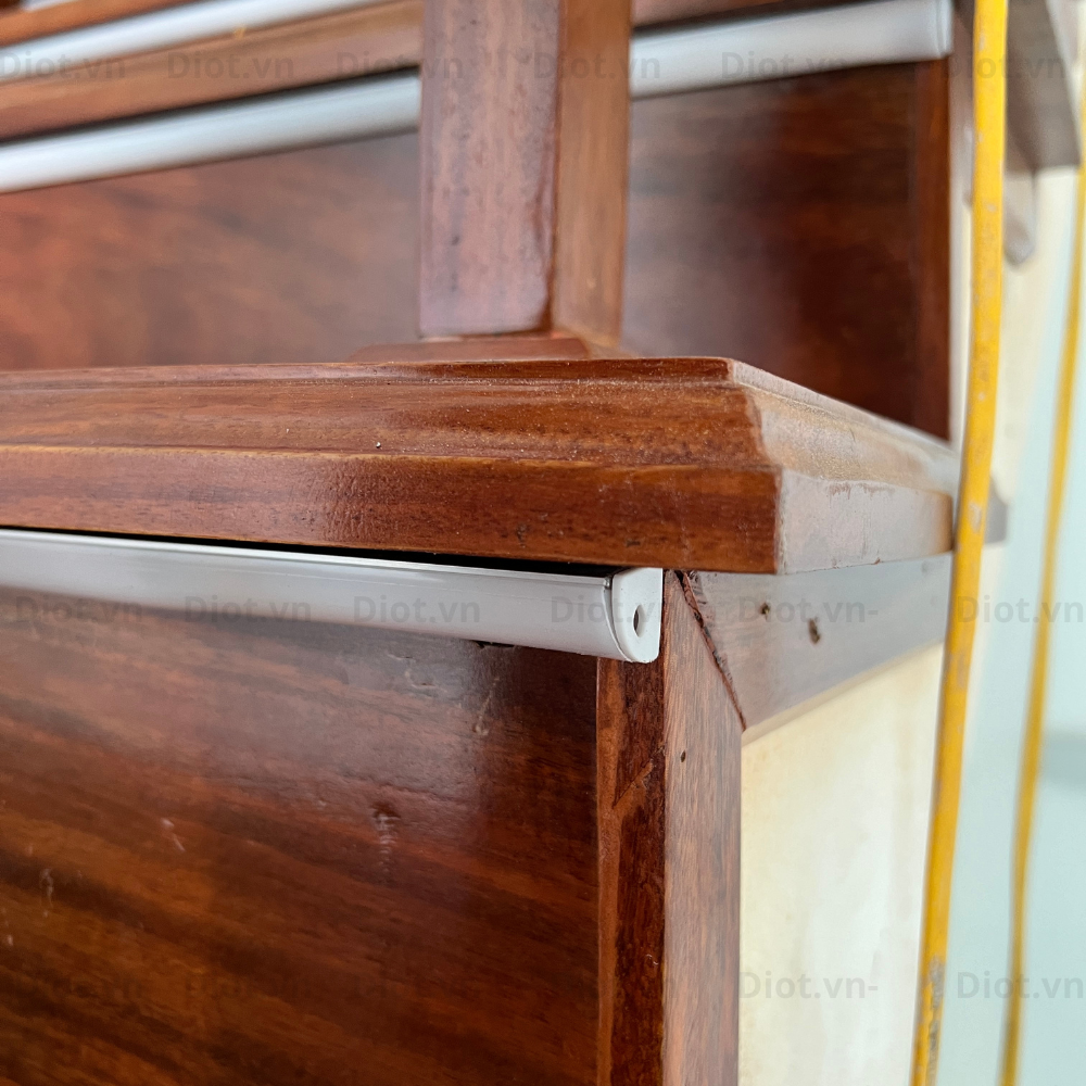 Khi tới giai đoạn lắp led, đội kỹ thuật sẽ cắt thanh nhôm theo kích thước chiều ngang bậc thang, dán led dây 12v vào