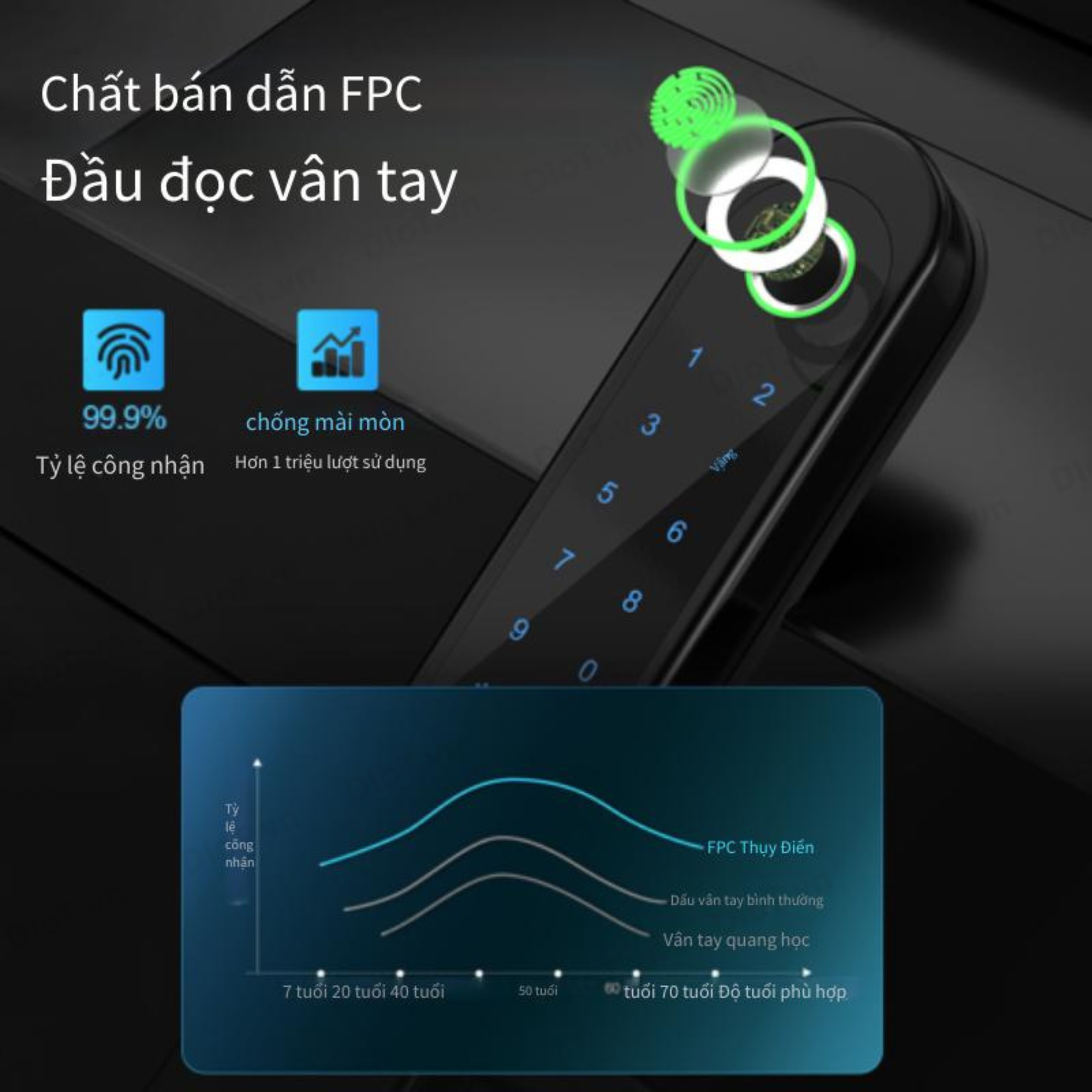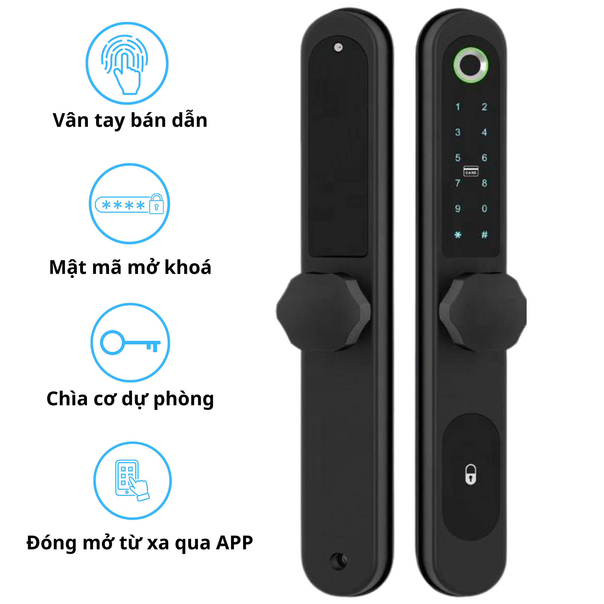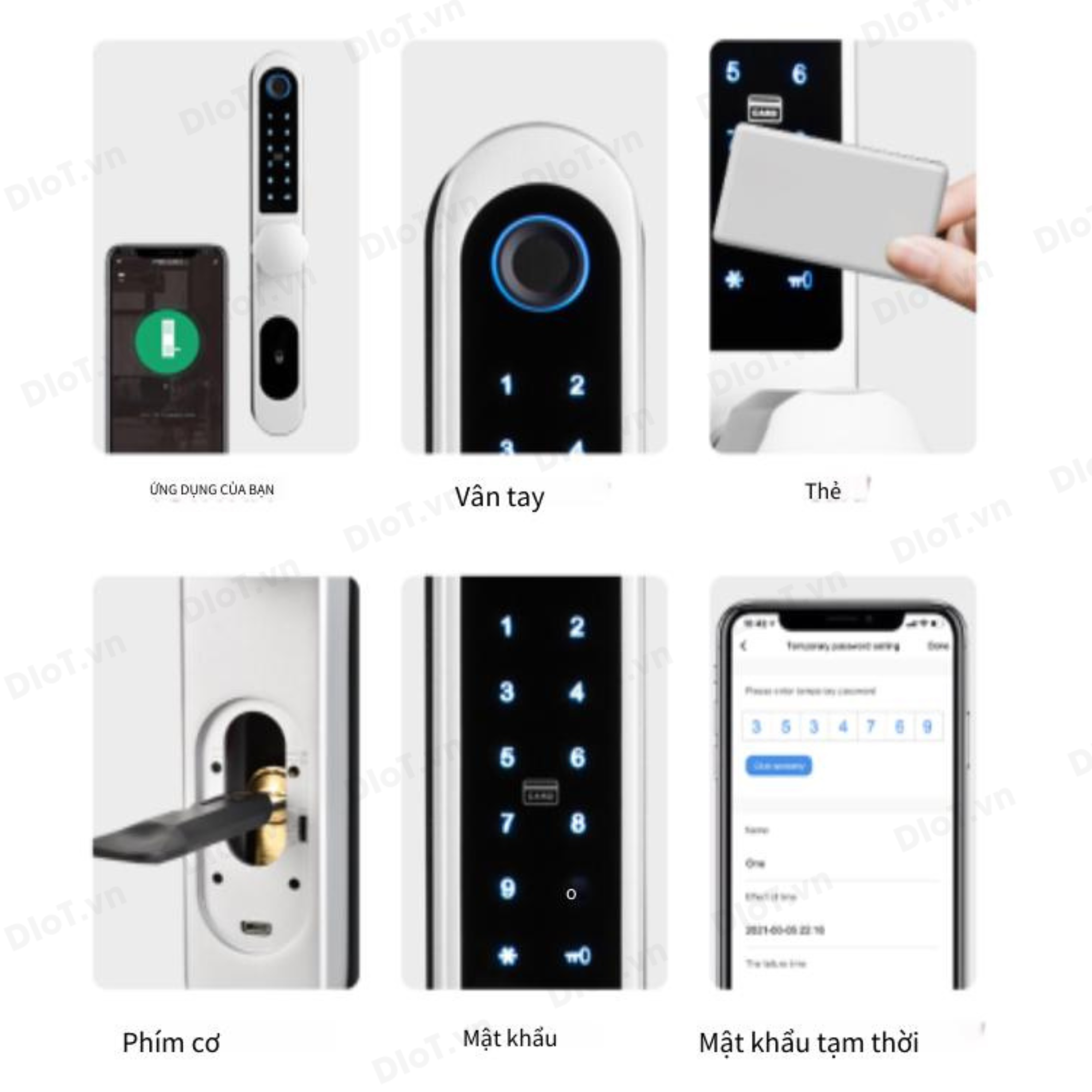 • Chế độ mở khóa : Ứng dụng, mật khẩu, vân tay, thẻ từ IC, chìa khóa cơ